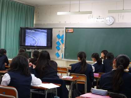 3年CD組の体育の授業の様子です。男子は校庭でソフトボールをしています。女子は保健です。オリンピックの映像資料を見ていました。(遠藤)