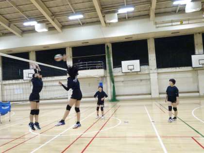 女子バレーボール部が体育館で活動しています。スパイクの練習をしています。(遠藤)
