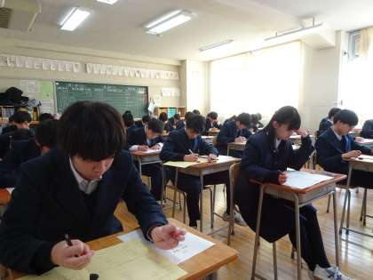 学年末考査1日目です。今日は「技術家庭」「社会」「音楽」の試験が行われます。自分の力を出し切れるように最後まであきらめずがんばりましょう。(遠藤)
