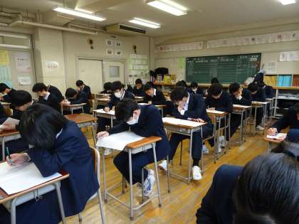 学年末考査2日目です。今日は「美術」(1,2年生)「国語」「理科」の試験が行われています。ミスの無いようにきちんと見直しをしましょう。(遠藤)