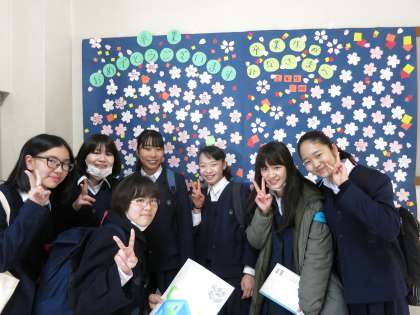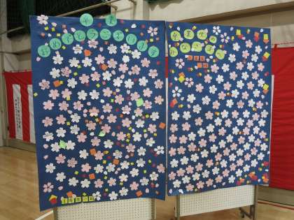 明日はいよいよ卒業式です。式に参加できない1・2年生も、3年生に向けてメッセージを書いて卒業式を飾ってくれます。3年生のみなさん、素敵な卒業式にしましょう。(多久)