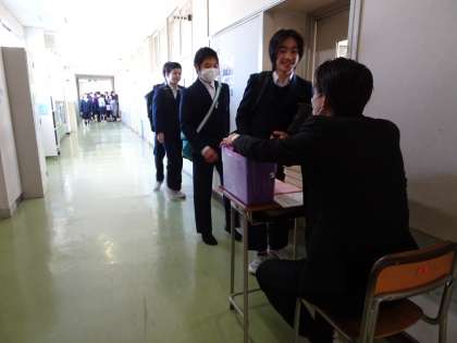 今年度最後の登校です。通知表と修了証を受け取りました。1週間後には新しい学年に進級します。元気な姿で会いましょう。(多久)