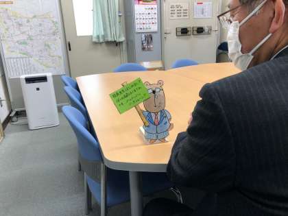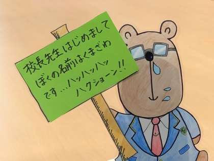 くまざわ:「こんにちは校長先生。僕の名前はくまざわです。」