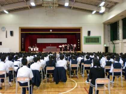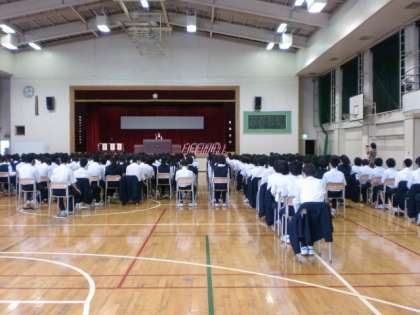 本日の6校時、前期の生徒総会が開催されました。前年度後期の活動報告が承認された後、今年度前期の活動方針が提案されました。生徒会役員会の活動方針は、「みんなが楽しく気持ちよく過ごせるように心がける」「心づかいを大切にする」「考えを行動に移す」「課題を最後までやり遂げる」です。各委員会からの提案には、学校生活をよりよいものにしようという意気込みが感じられました。また、ほとんどの委員会が9月の小学生体験入学の準備に力を入れようとしています。質問も、事前に29項目あがっており、後日文書で回答するものもありましたが、17項目が直接質問され、各委員長が質問に丁寧に答えていました。