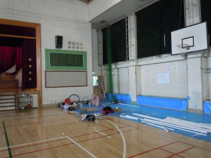 皆さん、お元気ですか?曇り空の静かな一日。生徒のいない学校はやはり寂しいものです。体育館では、空調設備設置のために工事が行われています。周囲は足場が組まれて危ないので、通るときには気をつけてくださいね。体育館のリニューアル楽しみです。(桝田)