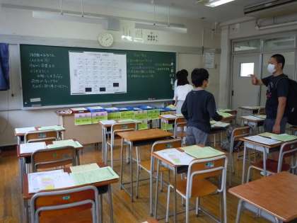 皆さん、こんにちは。本日は1年生と3年生の登校日でした。1年生は1階技術室で課題を提出しました。どのクラスも早めに登校していました。時間を守ろうとする姿勢がすばらしい!3年生は教室集合です。やはり教室は落ち着きますね。提出物が力作ぞろいでした。さすが3年生!ところで、ある教室には「尊重」の2文字が掲示されていました。「駒中Principle」のめざすところはここです。1年生の皆さん、駒中Principleを早く覚えてくださいね。(桝田)