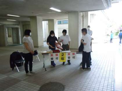 あわせて、本日は英検の申込み日でした。希望する人は全員受付を済ませることができました。今年度より各検定の申込みの際に地域のかたに協力していただくことになりました。学校だけでなく、家庭・地域等が一丸となって生徒のみなさんを支え、見守っています。