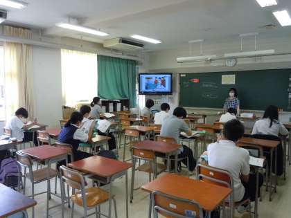 英語の先生「前の電子黒板に注目してください」
