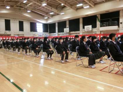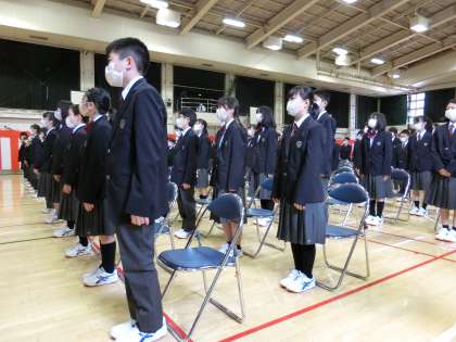 新入生呼名では、新しい制服に身を包んだ150名が中学校生活への思いを胸に返事をしていました。