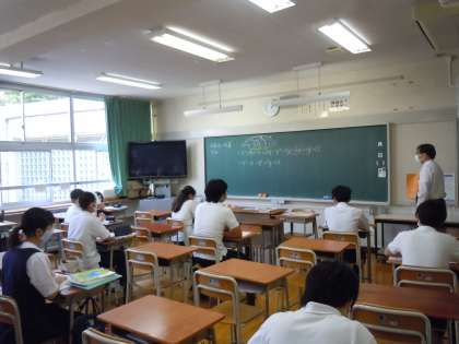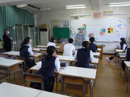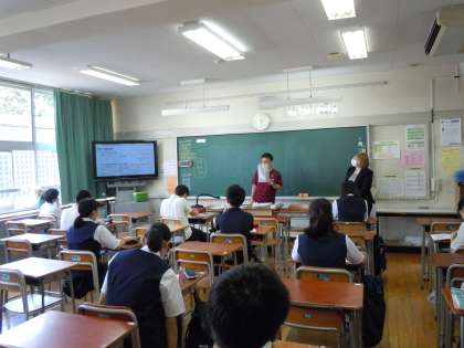 皆さん、こんにちは。暑い一日となりました。本日は3年生と1年生の分散登校日です。3年生は、どのクラスでもよく集中して授業に取り組んでいます。1年生に「授業にはこういう姿勢で臨むんだよ。」と見せてあげたい頼もしい姿です。さすが3年生、しっかり成長していますね!社会と美術の授業にはALTのステイシー先生も加わり、和やかに時が流れていました。(桝田)