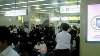 京都駅のコンコースで集合して乗車待機しています。全員元気です。