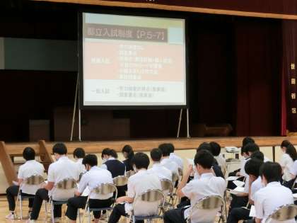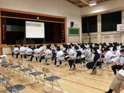 2時間目は、体育館で進路説明会が行われています。多くの保護者の方にご出席いただきありがとうございました。