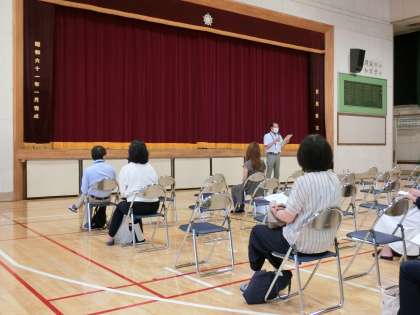 3時間目は、保護者会です。まずは、全体保護者会です。年間行事の大幅な変更や成績に関する情報をお知らせしました。