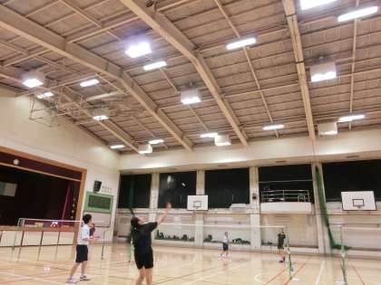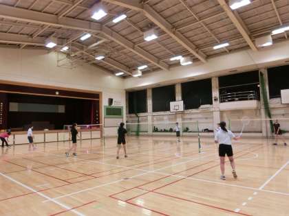 バドミントン部は、クリアの練習とスマッシュの練習をしています。