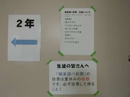 2年生は、「職業調べ新聞」の投票があるようです。必ず投票してから帰りましょう。
