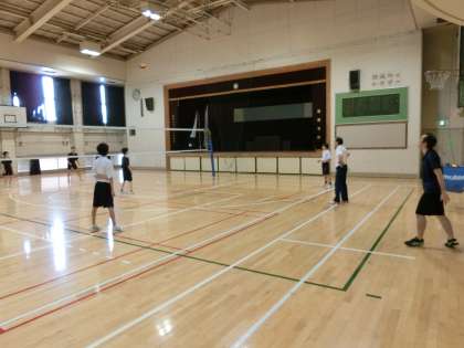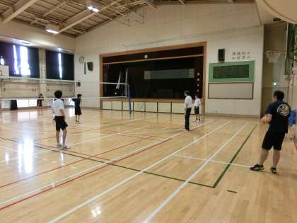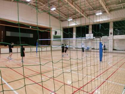今日の部活動を覗いてみましょう。バレーボール部が練習しています。みなさん気がつきましたか?今日は、校長先生も教えてくださいました。白いポロシャツが校長先生です。