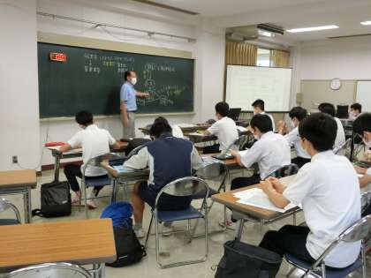 昨日に引き続き、今日も校長先生による社会の補習教室が行われています。