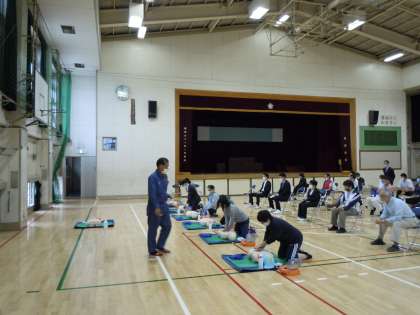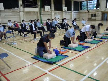 全員の先生がAEDの使い方や胸骨圧迫の方法を身に付けることができました。