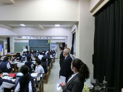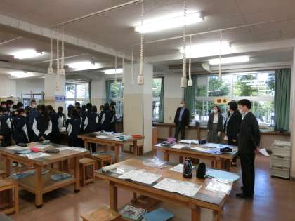 本日の4校時、渡部教育長をはじめ世田谷区教育委員会の方々8名が、