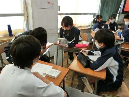 1年生で行われたビブリオバトルの様子です。生徒は自分のお気に入りの本を持参し、クラスメイトに紹介しました。授業の最後には「どの本が1番読みたくなったか?」を1人1票投票し、各クラスで最多票を得た本「チャンプ本」を決めました。「この本をみんなにぜひ読んでほしい!」という思いとともに、白熱した”ビブリオバトル”が繰り広げられました。(長尾)