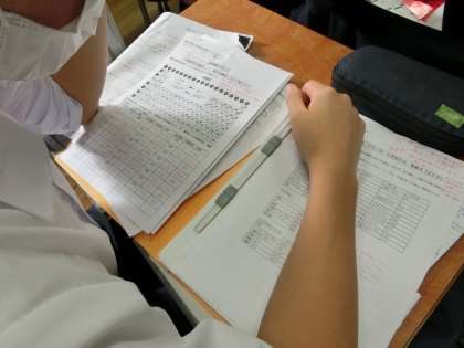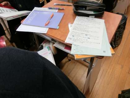 また他の生徒は家庭科のプリントを確認しています。
