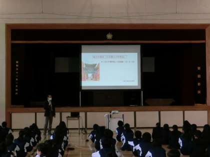 今日は校長先生から校外学習で行く横浜についてお話しがありました。
