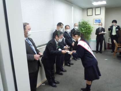 都の会長賞に選ばれた3年女子1名が、世田谷税務署の一日署長を務めることになり、12月17日に表彰を兼ねた一日税務署長行事に参加しました。幹部職員との名刺交換や模擬決済など税務署長の仕事を体験するという貴重な時間となりました。意見交換会では、中学生としてのこれまでの経験をふまえた自分の考えを伝えて、職員の皆さまからもお褒めのことばをいただきました。これからも、税のこと、世の中のことに関心をもち続けていきましょう。(桝田)