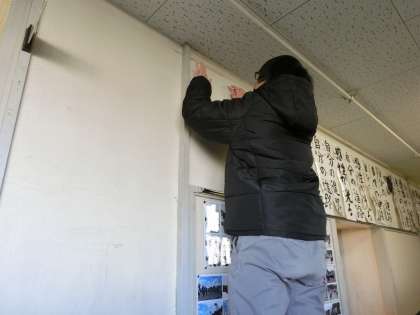 放課後に、各クラスの国語係のみなさんが、冬休みの課題だった書き初めを廊下に掲示してくれました。