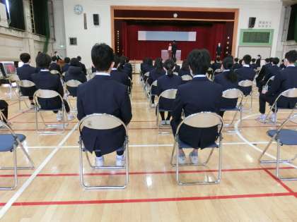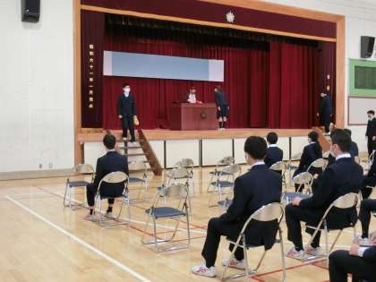 体育館では、3年生が卒業式の練習をしています。練習とは思えないほどとても集中しています。