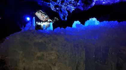 氷穴と風穴は一年中氷が溶けません。天然冷凍庫です。(桝田)