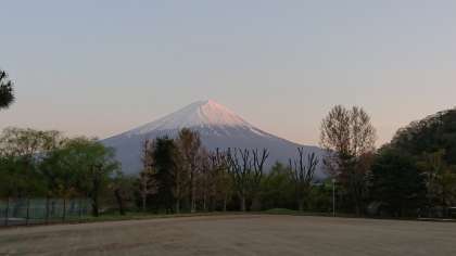 河口湖林間学園に到着しました。夕方になり、赤富士を見ることができました。(桝田)