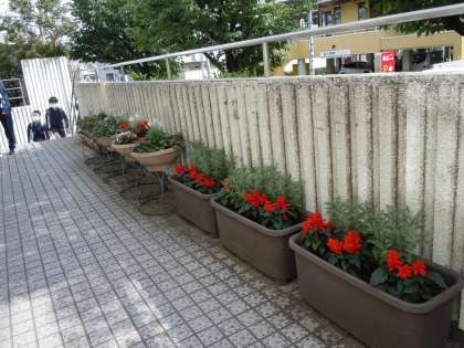 学校支援地域本部の活動として校内緑化に取り組んでいただきました。玄関と中庭のプランターが、冬の花から春夏の花に衣替えです。学校が明るくなり和みますね。いつもありがとうございます。(桝田)