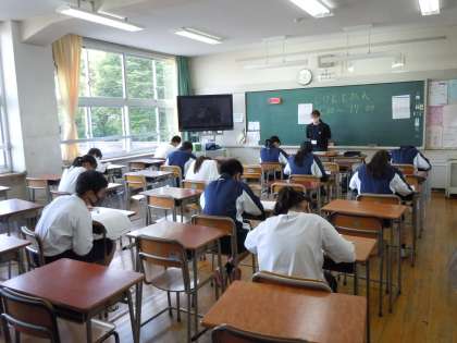 先日の英語検定に続き、学校支援地域本部の皆さまに運営していただきました。卒業生も試験監督に加わり、活動が広がってきました。受験者は真剣に漢字と向き合っています。結果が楽しみですね。(桝田)