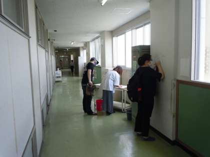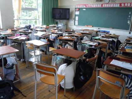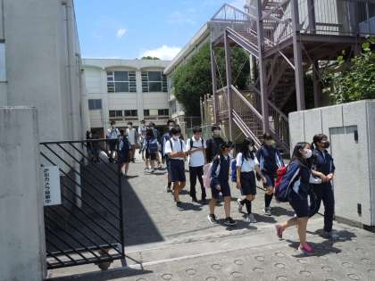 大規模地震発生を想定した訓練を行いました。地震発生を知らせる放送が入ると、まずは机の下に身を隠します。頭を保護することが重要です。揺れがおさまったところで、緊急連絡メールを配信して、保護者の方にご来校をお願いして引き渡しとなります。本日は訓練なので、一定時間の後に地区ごとに集団下校となりました。現実には集団下校ができない状況も考えられ想定外のことも起こるかもしれませんが、一連の訓練を滞りなく終了できました。保護者の皆さま、ご協力ありがとうございました。(桝田)