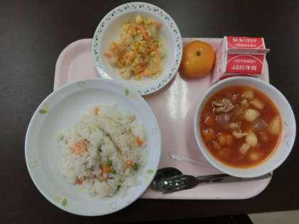 今日のシーフードピラフは、エビやイカのうまみが出て、ご飯にしみこんでいてとても美味しかったです。