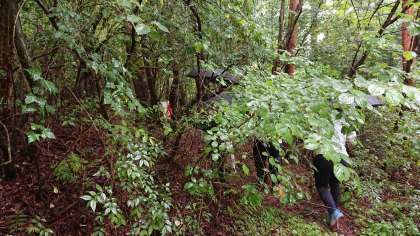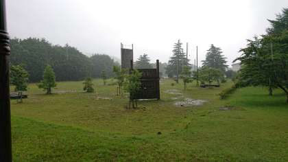本日は、10月に予定されている河口湖移動教室の合同実踏に来ています。あいにくの雨模様ですが、緑の休暇村オリエンテーリングコースをまわっています。(桝田)