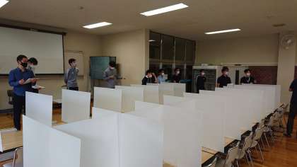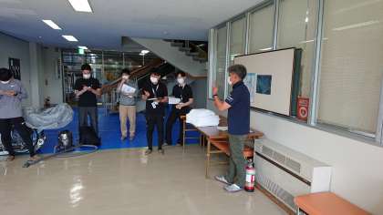 林間学園に着きました。耐震工事が始まり、これまでの動線を変えなければいけません。説明を聞きながら、施設を確認しています。(桝田)