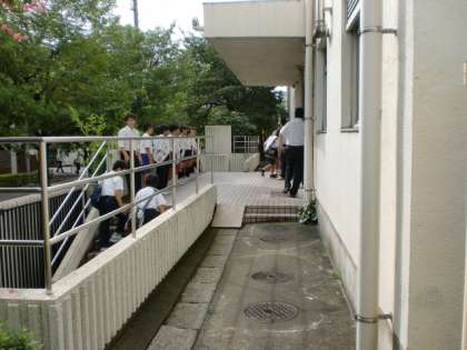9日に、生徒会役員選挙があります。定数6人に対し、10名が立候補しており、朝の登校時に応援者とともに玄関であいさつをしています。