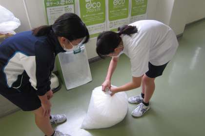 コンタクトレンズを使用している生徒や先生が、定期的にリサイクルBOXに入れています。