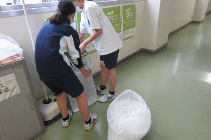 保健委員が回収したコンタクトレンズのケースを袋にまとめてくれています。