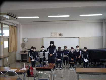 3年生主体の生徒会本部が企画する生徒会朝礼も本日までとなります。これまで生徒会活動をリードし活躍した3年生の生徒会役員と専門委員会委員長の皆さん、ありがとうございました。これからは新しく選出された新役員が中心になっていきます。これまで3年生が遺してくれたよいものを継承しながら、新たな発想もいかして充実した生徒会活動にしていきましょう。(桝田)