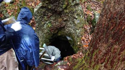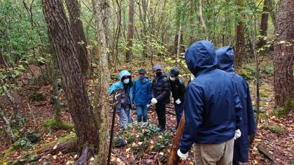 フィールドセンターでは、ガイドウォークとペーパーウェイトづくりに取り組みます。ガイドウォークでは、森を歩き、溶岩樹形に入りました。自然のすごさを体感できましたね。(桝田)