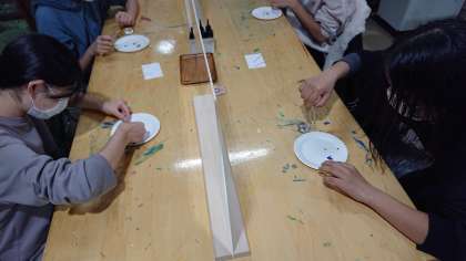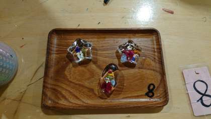 富士山周辺で採集された花を使ってペーパーウェイトづくりに取り組みました。世界に一つのオリジナルが完成しました。(桝田)