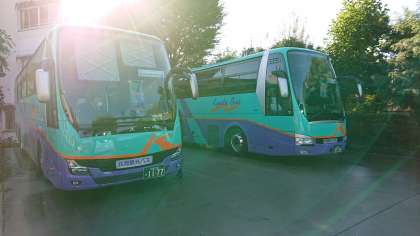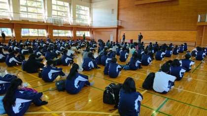 体育館で閉園式を行い、8時50分に林間学園を出発しました。緑の休暇村に向かいます。(桝田)