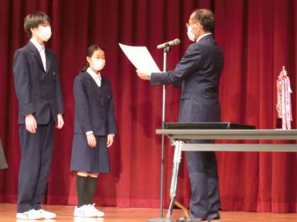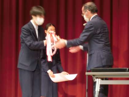 午後1時20分より閉会式が行われ、審査結果が発表されました。3年生は3クラスなので金賞として1クラスが表彰、1,2年生は4クラスなので金賞・銀賞としてそれぞれ2クラスが表彰されました。