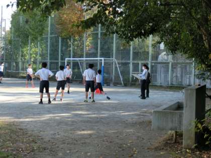 5時間目の3年生の授業をのぞいてみましょう。グランドで、ソフトボールをしています。