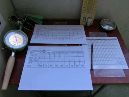 乾湿計用湿度表も準備されています。みんなで協力して観測しましょう。