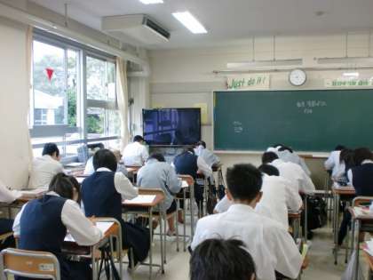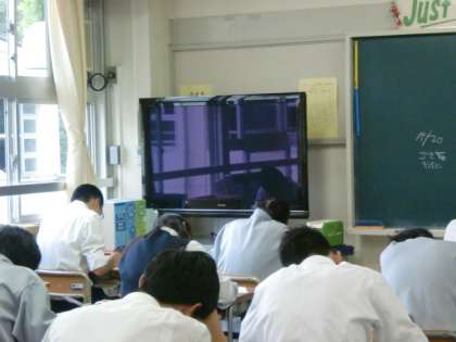 本校は、この度、区のICT活用センター校になり、24日に50型薄型テレビと書画カメラが全普通教室分10セットが設置されました。今後納入検査が済めば、全ての普通教室で、いつでも、気軽に画像を活用した授業ができるようになりました。また、これまで導入していたプロジェクター類を特別教室に常設することによって、必要とする全教室で活用できるようになりました。教室には、すでにLANの端末がきていますので、パソコンを持って行けば、インターネットの画面を映すこともできます。今年度の授業改善の一環として、ICT機器の活用は学校経営方針の重点にしていますので、これから授業での実践、研修会を通じて効果的な活用法を各教科で進めていく計画です。