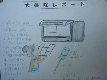2年生家庭科の課題は「大掃除レポート」です。様々な箇所の丹念に掃除しています。工夫しているポイントがとても参考になりますね。(桝田)