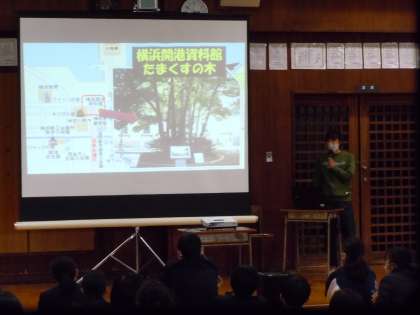 3月に実施予定の校外学習オリエンテーションが行われました。1年生の目的地は横浜です。現地まで学校よりバスで行き、到着後に班行動を実施する予定です。帰りも現地から学校までバスを利用します。感染症対策として、公共の交通機関を利用しないことにしています。校外学習の目的や横浜の見どころがスライドで紹介されました。移動教室の成果をいかして充実した校外学習にしましょう。(桝田)